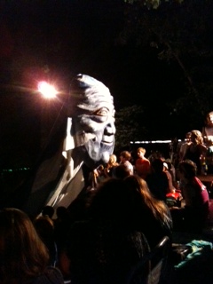 The Paperhand Puppet Intervention, http://paperhand.org/, an environmental organization in the form of an amazing puppet show, has just finished its 2012 performances at Chapel Hill, NC’s charming outdoor Forest Theater. Now it’s moving its operations to the North Carolina Museum of Art, Raleigh, NC ( http://ncartmuseum.org) for a final weekend. If you are anywhere in the NC Triangle/Triad area or can get there, this puppet pageant is a can’t miss experience. This year’s pageant, “City of Frogs,” is a kind of Pinocchio-Meets-Barbapapa (GASP! You don’t know about Barbapapa? http://en.wikipedia.org/wiki/Barbapapa) tale featuring stiltwalkers, dancers, giant puppets, innovative sets, and beautiful art, all to further the organization’s mission. On the Paperhand web site, its artists state: “Our vision is inspired by our love for the earth and its creatures (including humans) as well as our belief in justice, equality, and peace.”