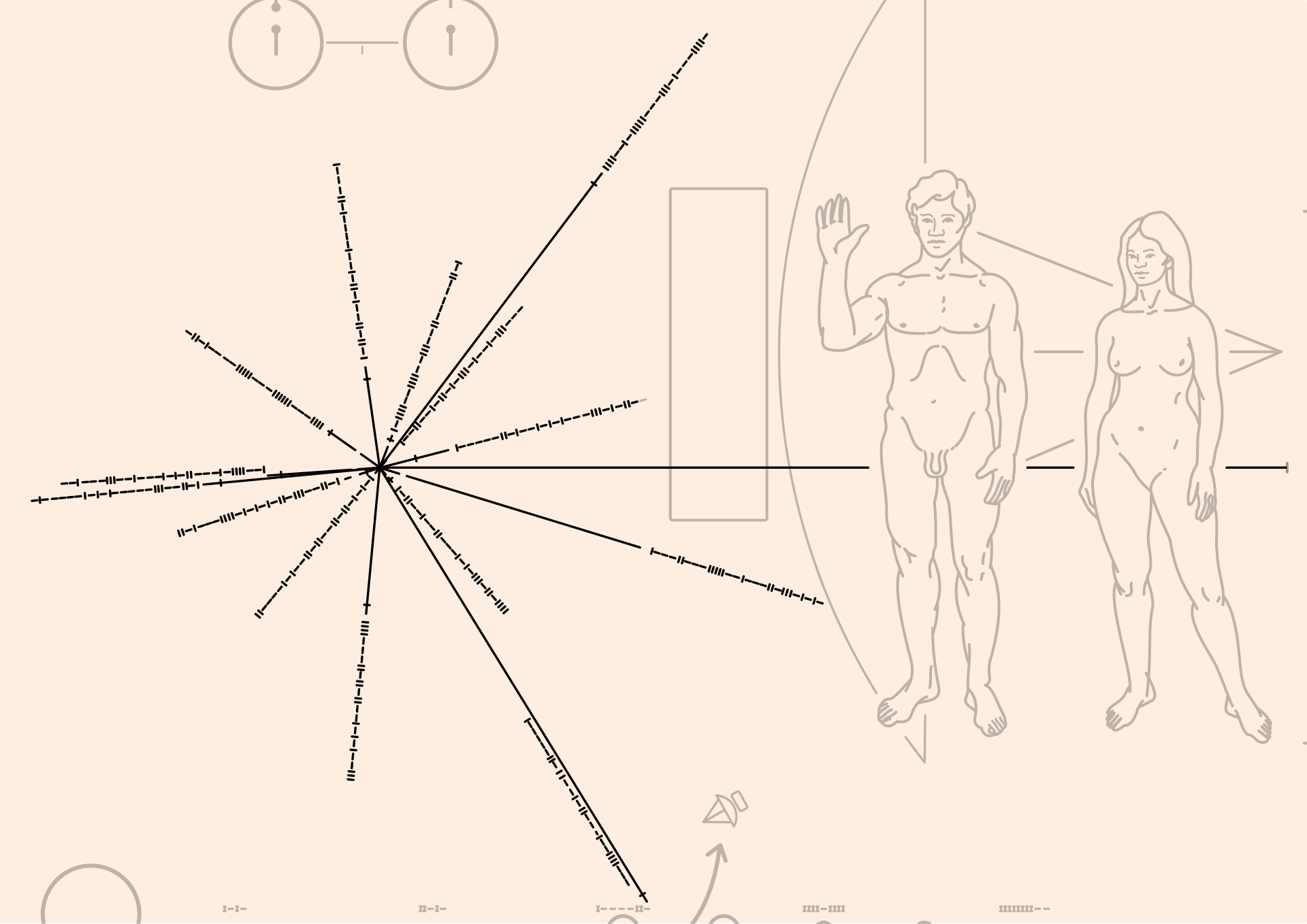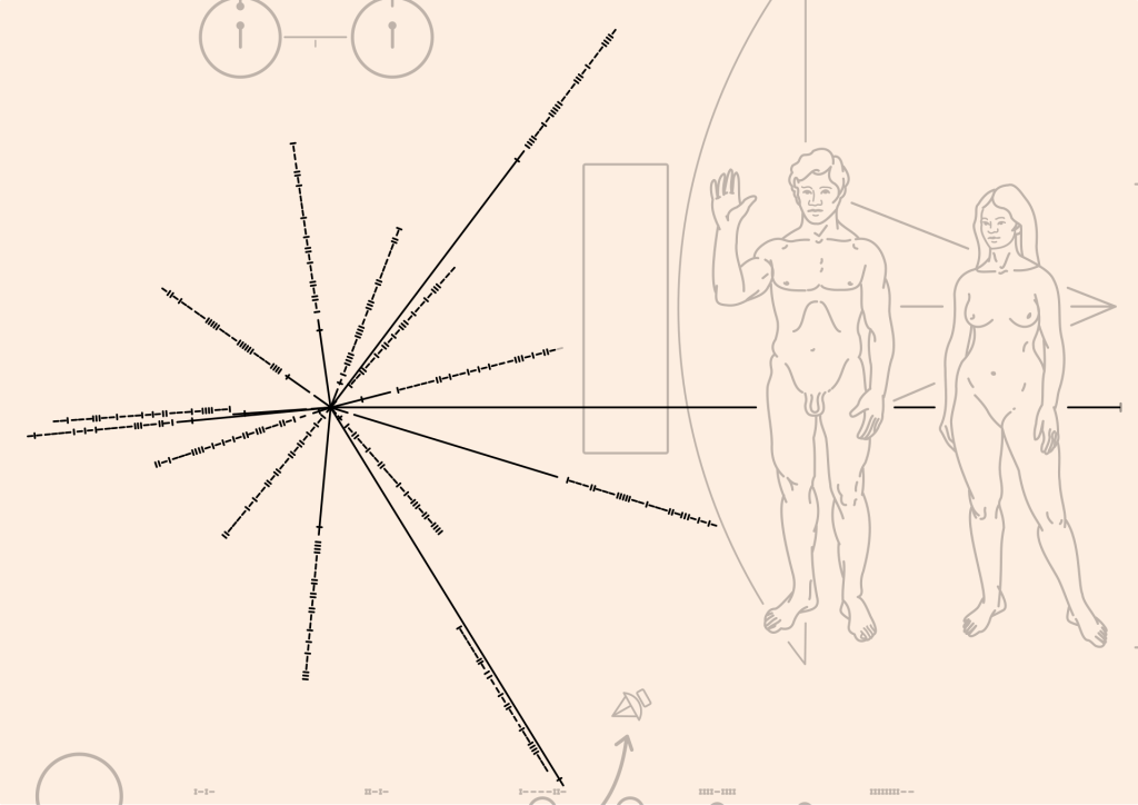 What WILL they make of those anatomically-correct drawings sent out with the Pioneer 10 and 11 spacecraft? Suppose the aliens on the receiving end are not mammals? Maybe the Pioneer plaque, to use just that one example, tells US a lot more about us, and us at a single point of time, from the perspective of one human society, than it might tell any mysterious Them out there. Take a look at that dominant clearly Caucasian male, the one doing the hailing, and then that shrinking helpmeet woman hanging diffidently at his side.