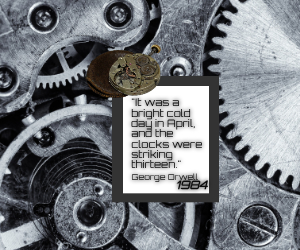 Here in the mountains east of Albuquerque NM it’s a bright mild day in December and the real 1984 is decades in the past, but Orwell’s dystopian classic still fits, now more than ever. Sadly. What better quotation to use for my 13th? Happy holidays. You’re welcome.